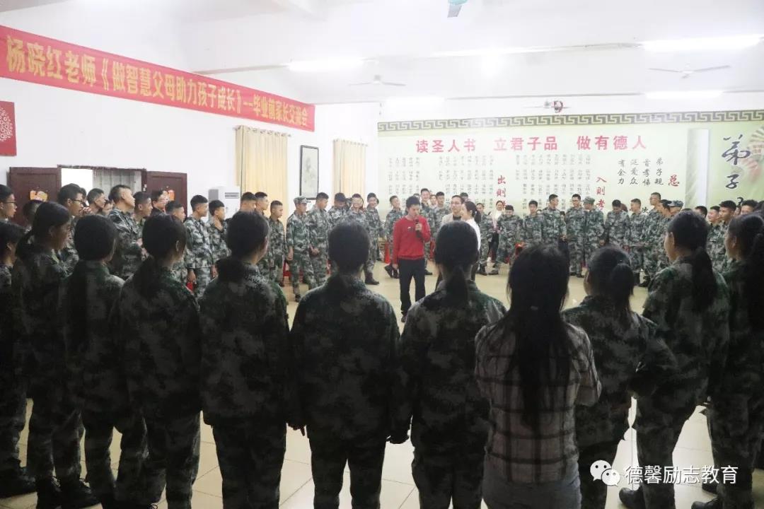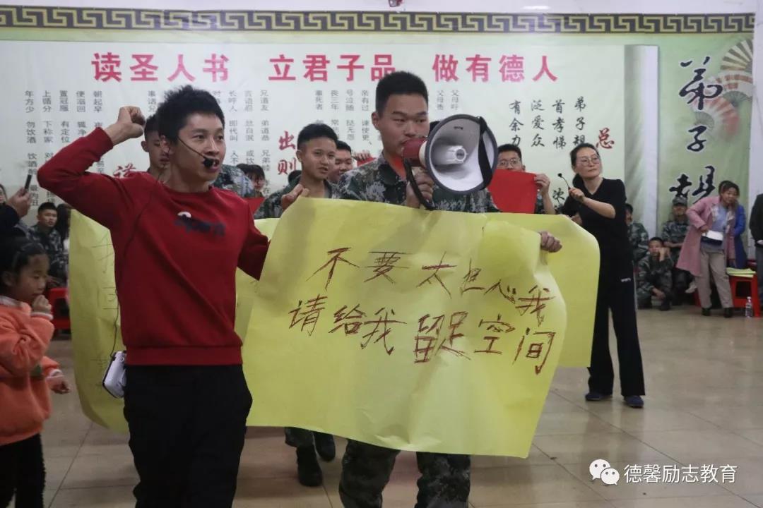 学生代表发言:在没来德馨励志教育之前抽烟、喝酒、早恋、逃学、夜不归宿都是家常便饭,接受德馨励志教育的专门教育,健康心理辅导和行为训练,让我们明白了做人的道理和做事的原则,解决了我和父母之间的隔阂。我也开始懂得孝顺父母,理解父母的用心良苦。毕业以后将努力学习,把落下的功课补回来,努力考上一所适合自己的高中,不再像以前那样,让父母操心,做一个体贴懂事的好孩子。