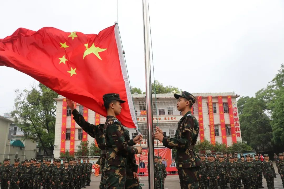 在签约揭牌仪式现场,由我校学生组成的国旗护卫队,统一的着装,踏着整齐的步伐,来到国旗台下,隆重举行升国旗仪式,国旗在全场人员的注目下,缓缓升起,迎风飘扬。