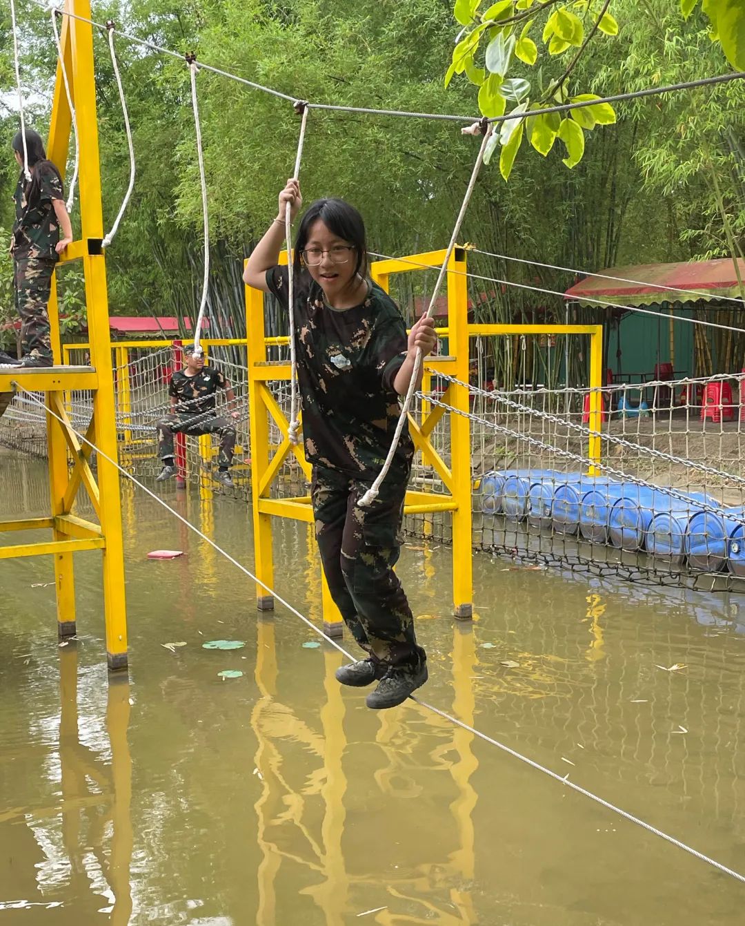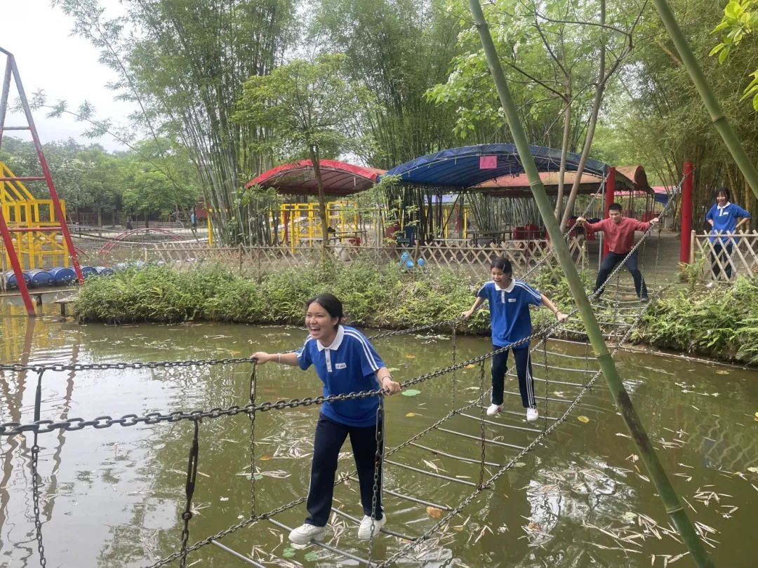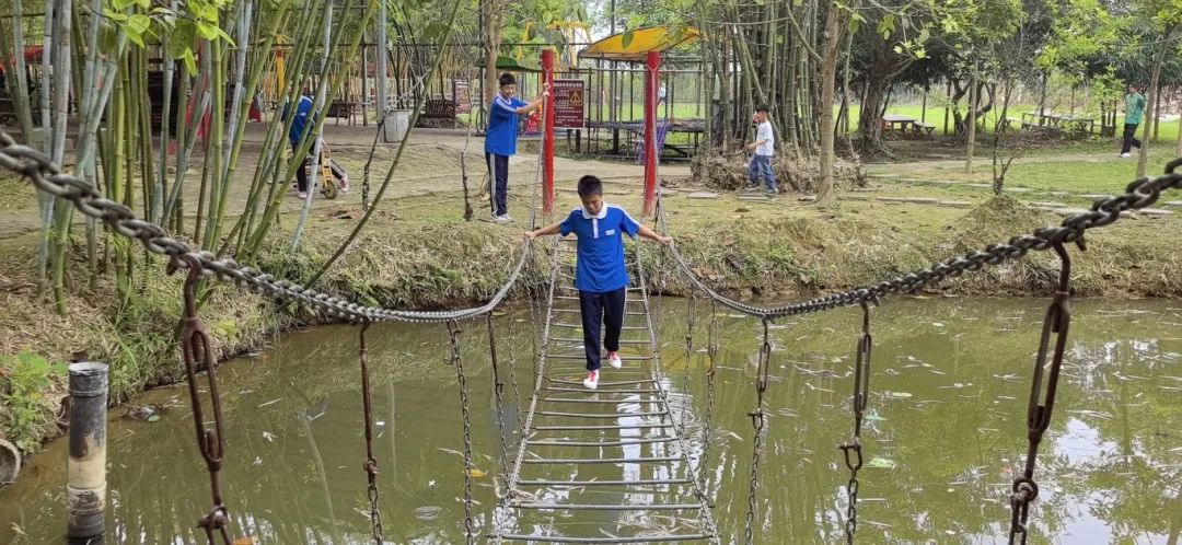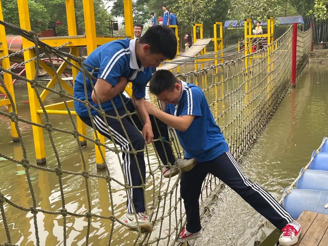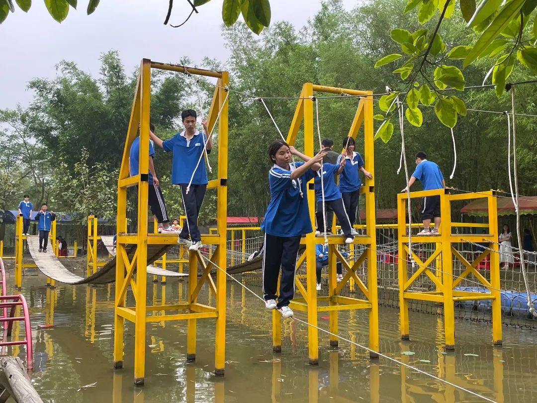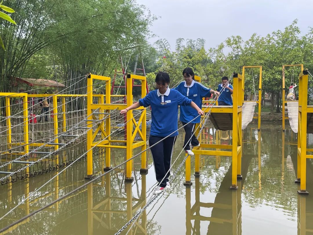 紧接着是水上拓展赛道活动,游戏中锻炼同学们的平衡感、团队的支持与鼓励。