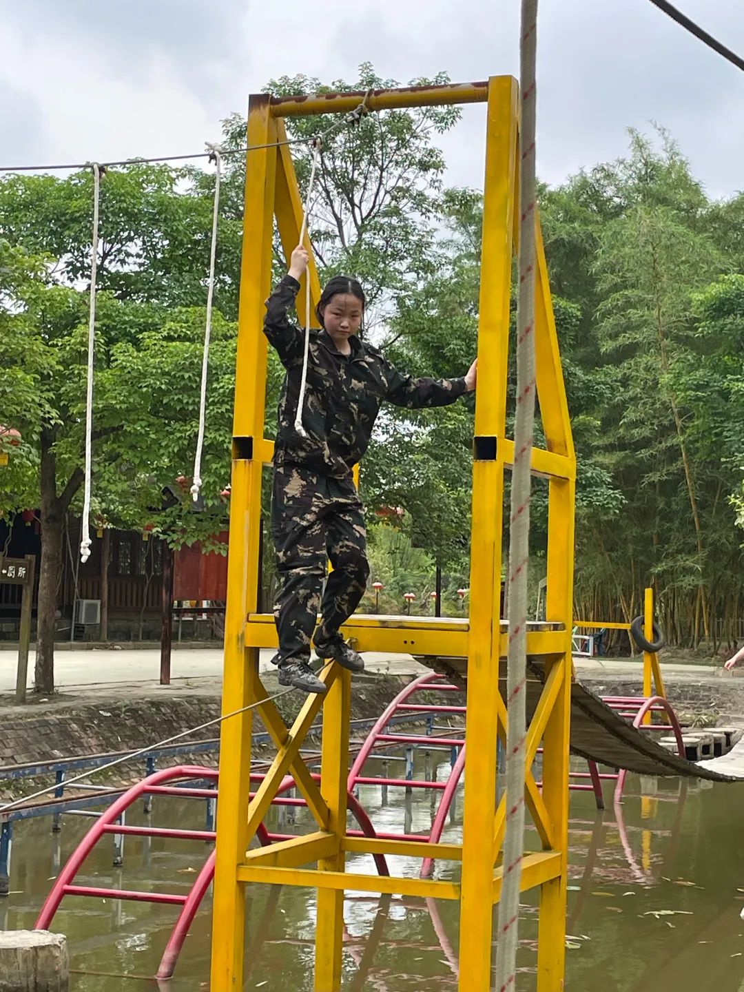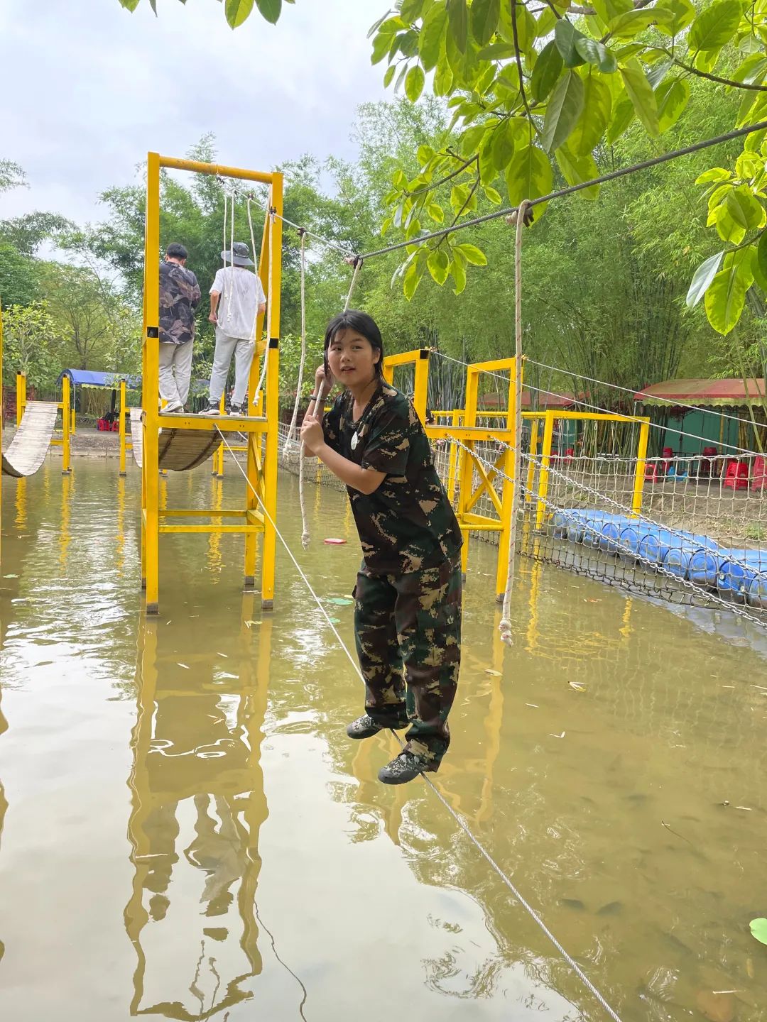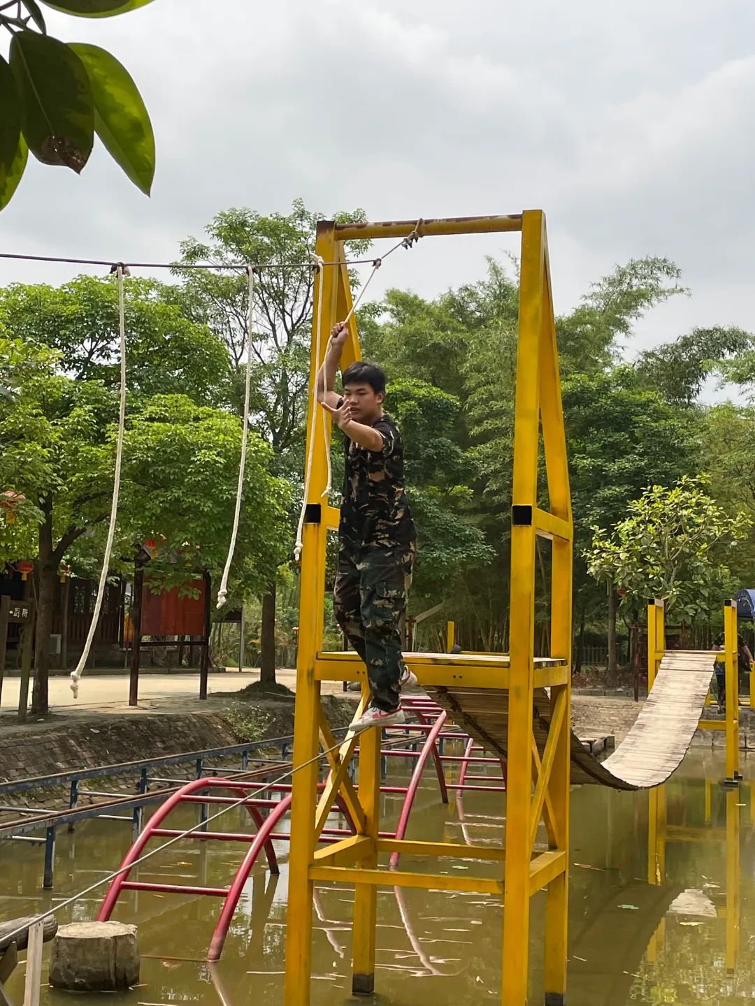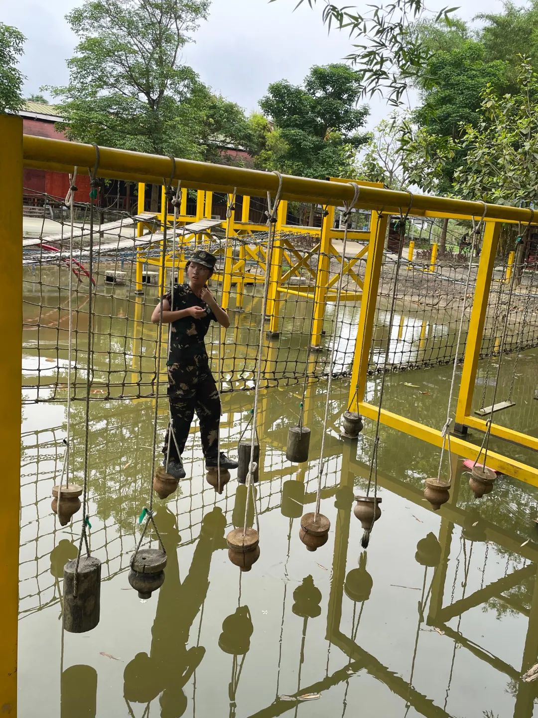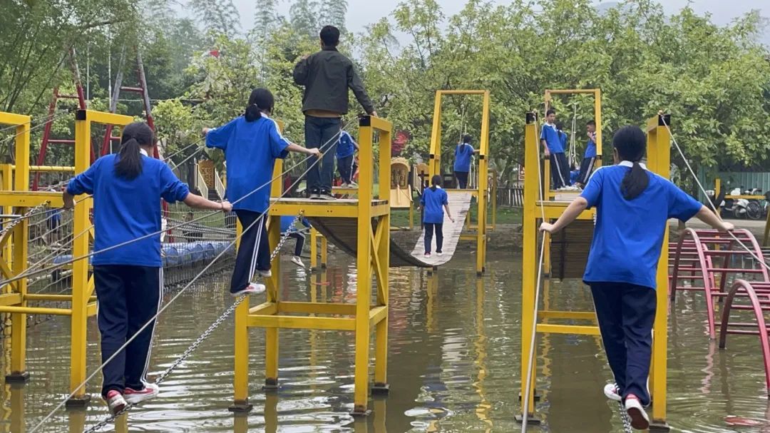 紧接着是水上拓展赛道活动,游戏中锻炼同学们的平衡感、团队的支持与鼓励。