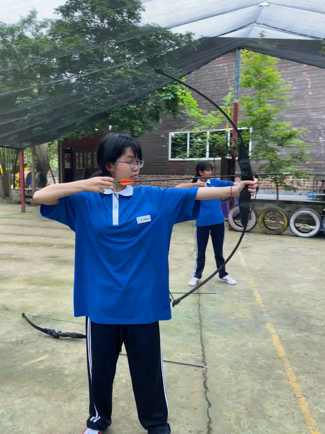 接下来是射箭活动,游戏中可以让同学们专注集中注意力以及锻炼自己的臂力力量。