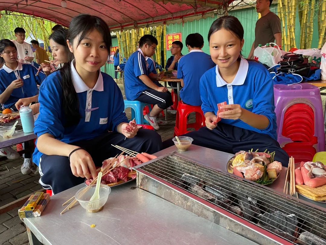 同学们享受自己动手烧烤的美味佳肴