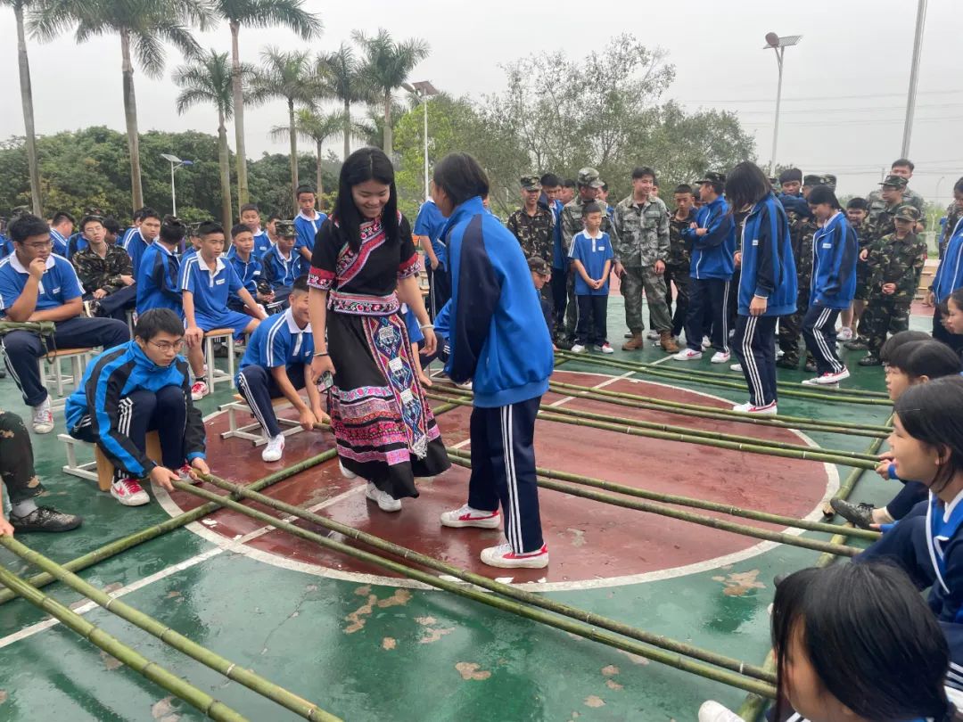 载歌载舞是过节的常见仪式,伴随着山歌的节奏,同学们灵巧地跳跃在竹竿之间,跳起了竹竿舞,洋溢着青春的气息和浓浓的民族味道。