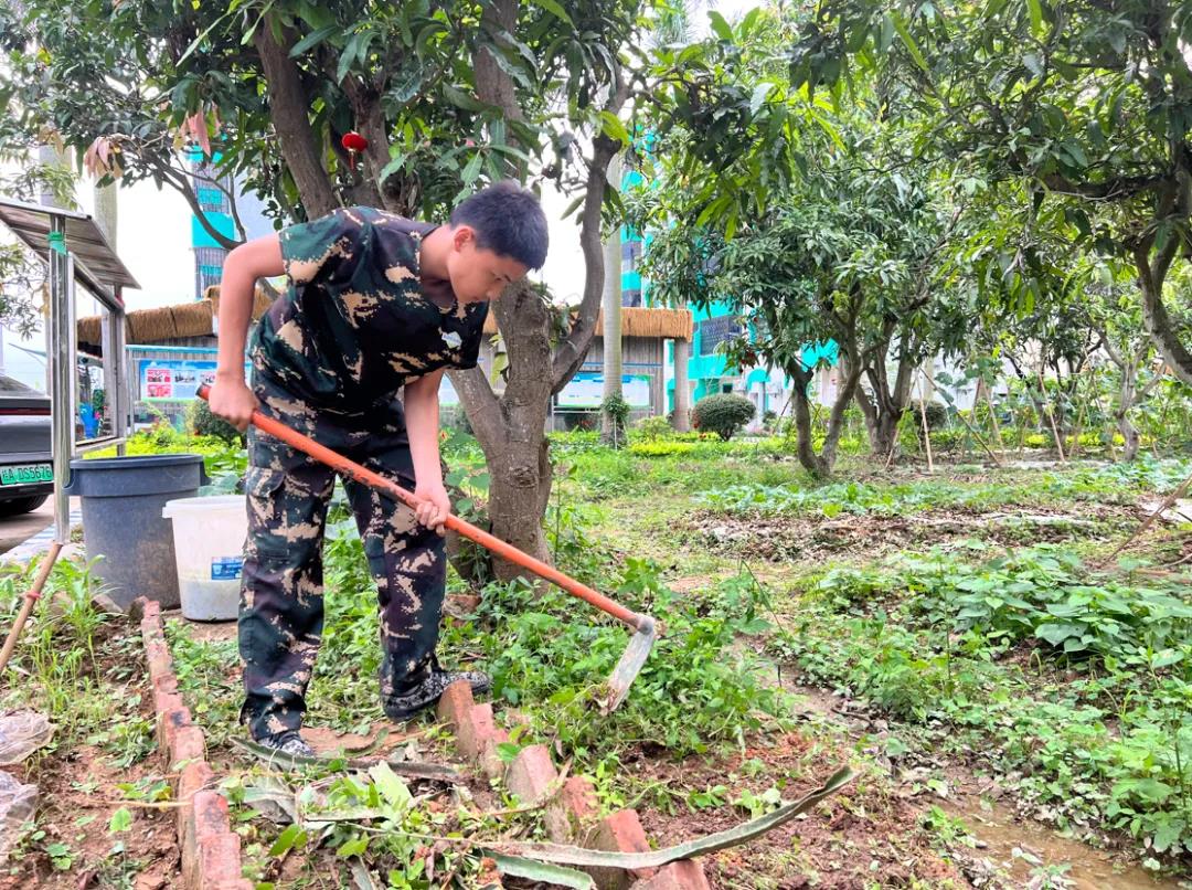 下午,同学们在教官和老师的带领,走出课堂,一起走进大自然,让同学通过亲身劳动,体验劳动的快乐,感受劳动的艰辛,享受劳动的成果,用自己的行动能力诠释着勤劳、责任与担当。